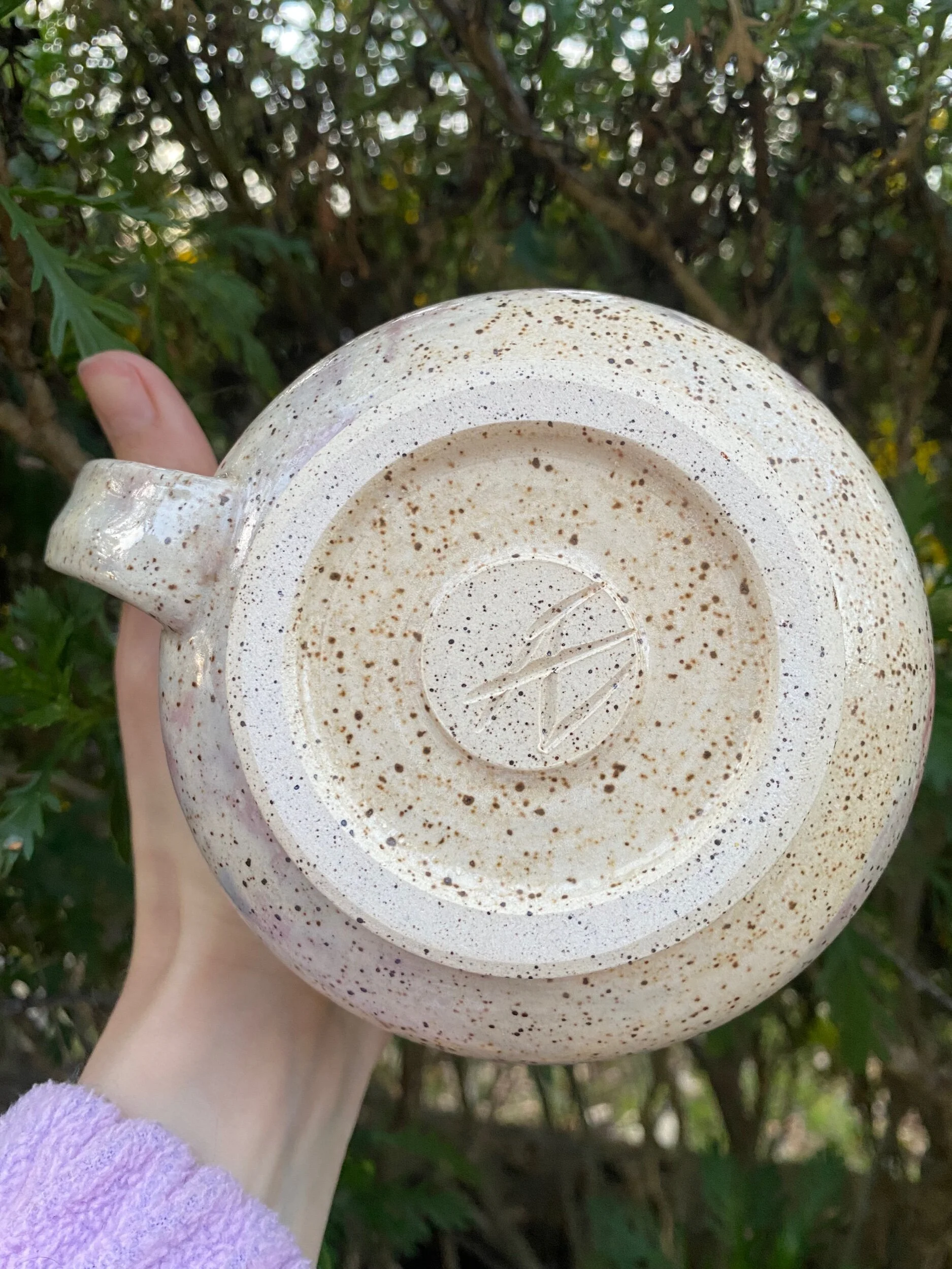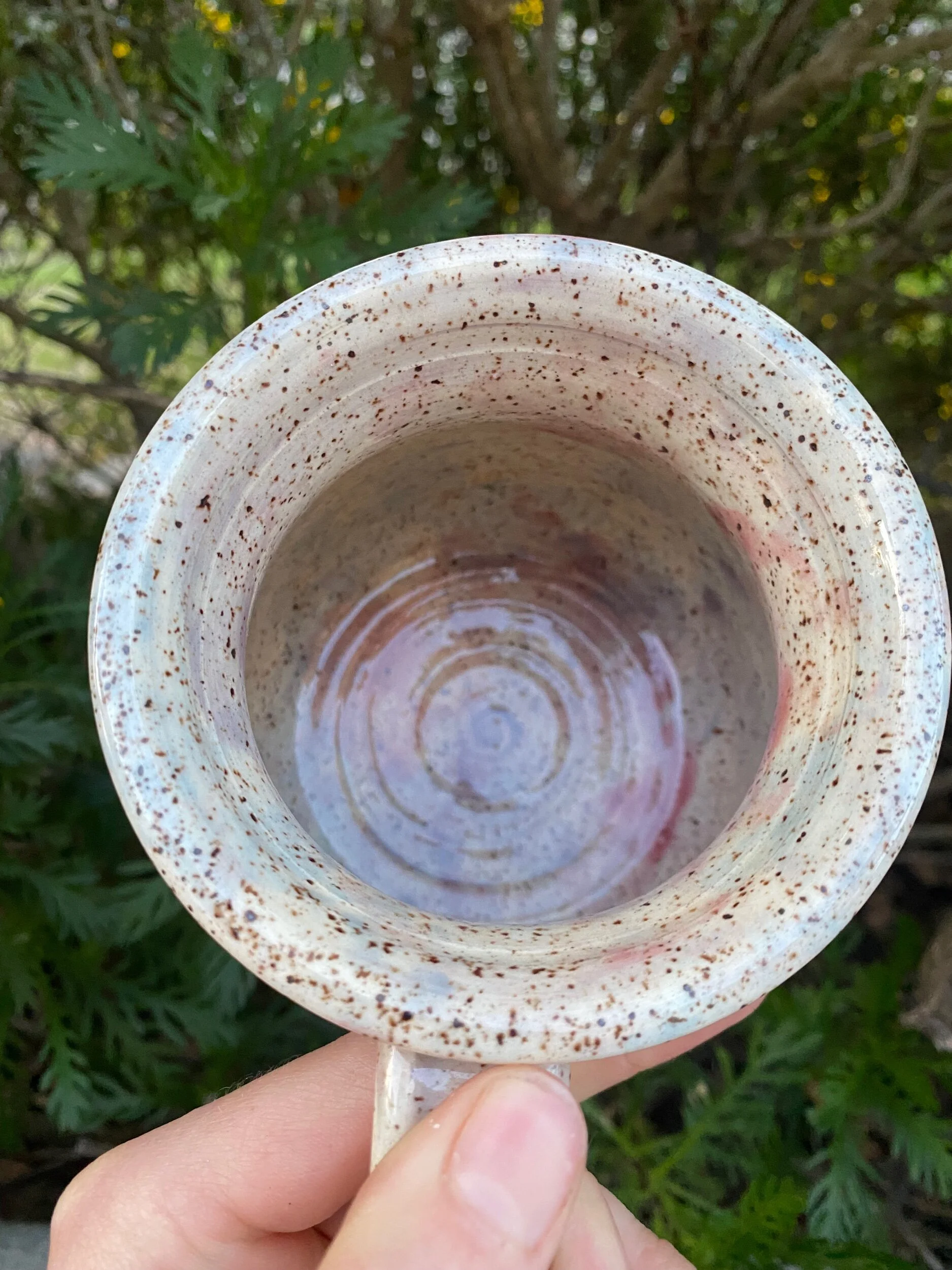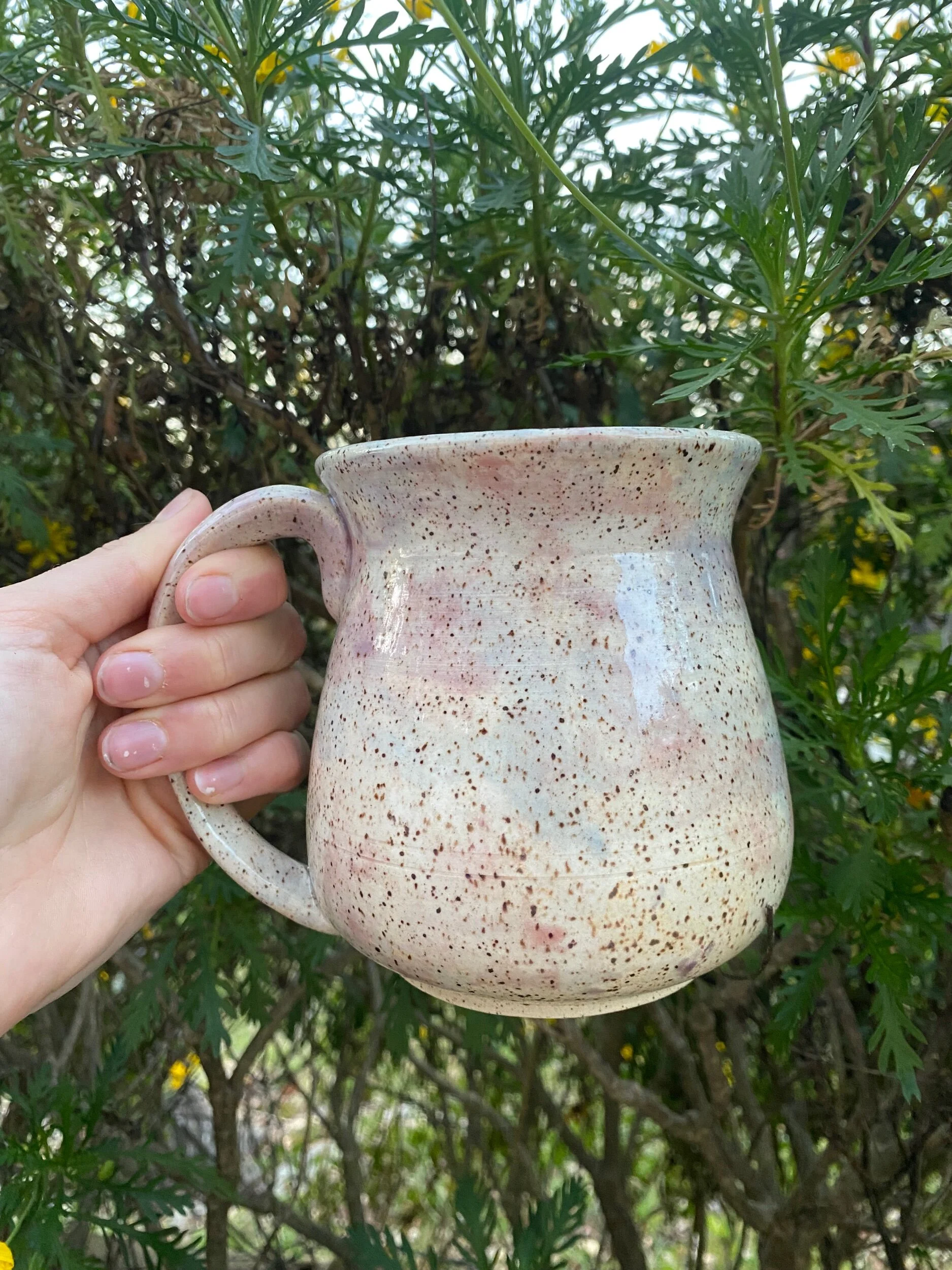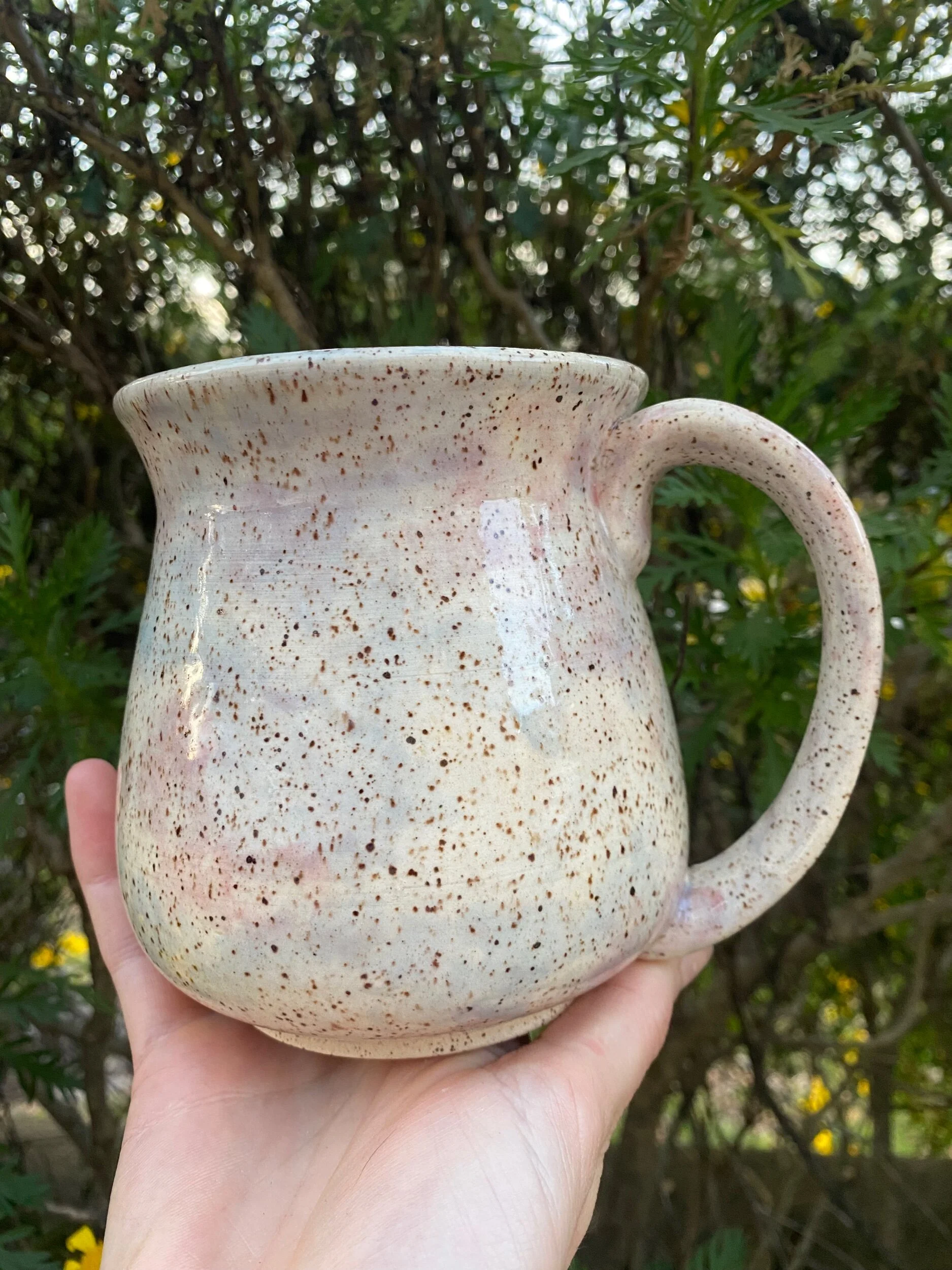 Hand thrown mug, made with a Speckled B-mix clay body.