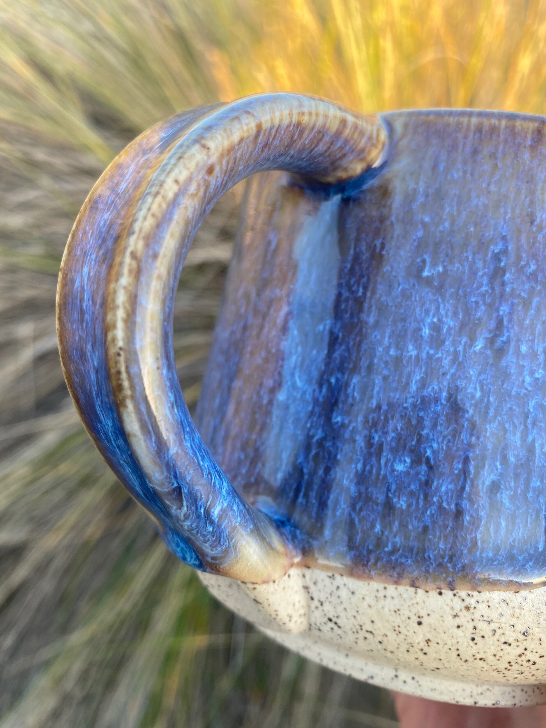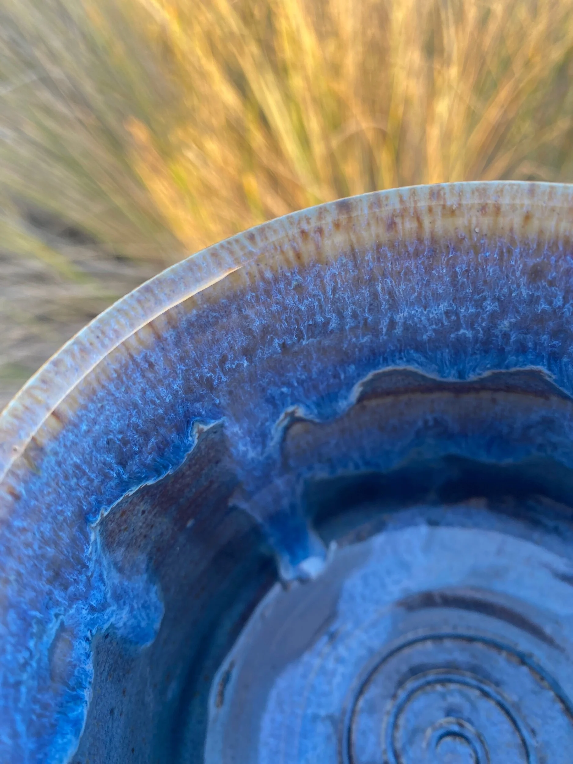 Fired to cone 6, glazed with Oatmeal and Blue Rutile